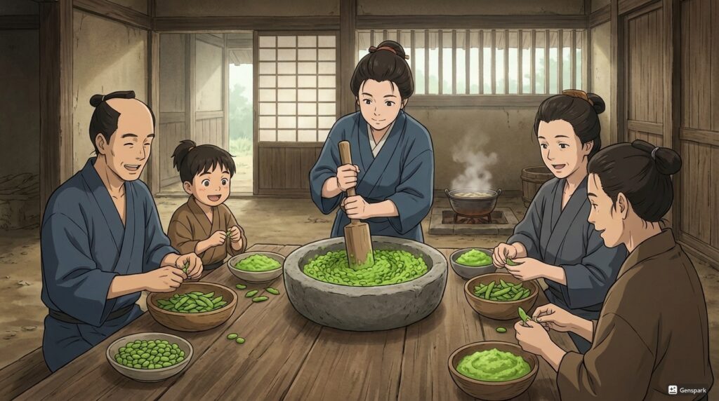 平安時代の記録を紐解けば、当時、すりつぶした枝豆はお粥に混ぜて食されていた。